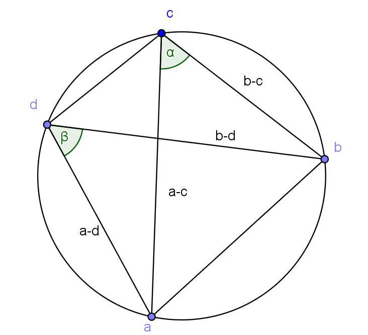 -be. A két komplex szám hányadosa ugyanaz az egységnyi hosszúságú komplex szám kell, hogy legyen.