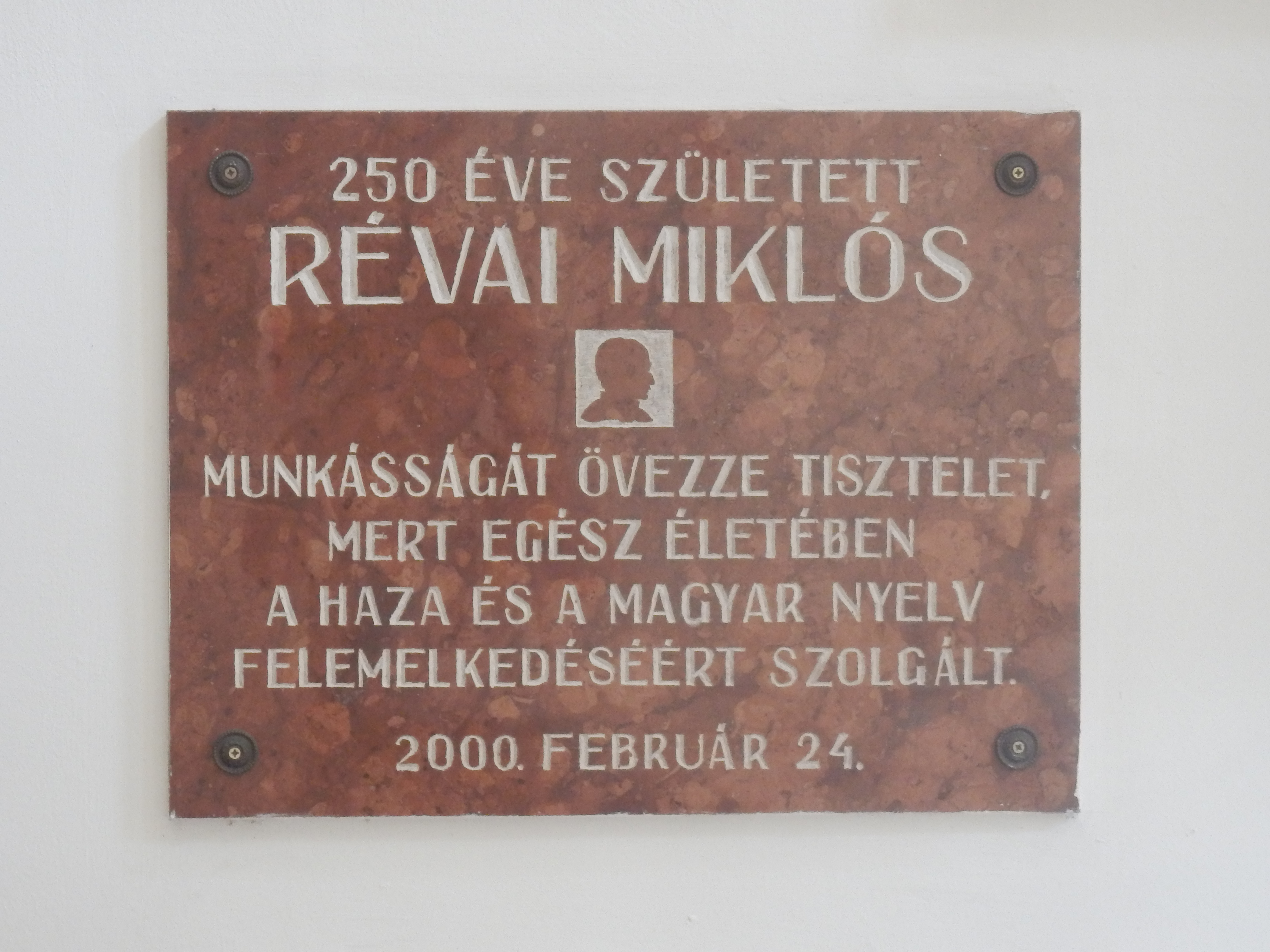 Révai Miklós emléktáblája a főbejárat melletti falon