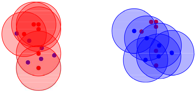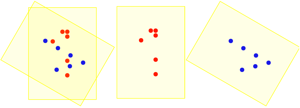 , az rögtön kiderül. Képzeljük úgy, hogy a kék és piros ponthalmaz egy-egy üveglapra van felfestve.